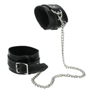 قياسات: طوق: يناسب أحجام الرقبة من 16 إلى 20 بوصة في المحيط ، سلسلة طويلة بطول 22 بوصة ، مقبض حلقي بطول 8.5 بوصات ، أصفاد معصم: تناسب محيط المعصم من 5.5 إلى 9.5 بوصات ، سلسلة متصلة بطول 7 بوصات ، أصفاد الكاحل: تناسب محيط الكاحل من 8 إلى 12 بوصة ، سلسلة ربط بطول 19.5 بوصة ، سوط: الطول الإجمالي 33 بوصة (بما في ذلك حلقة المقبض) ، ذيول طويلة 21 بوصة